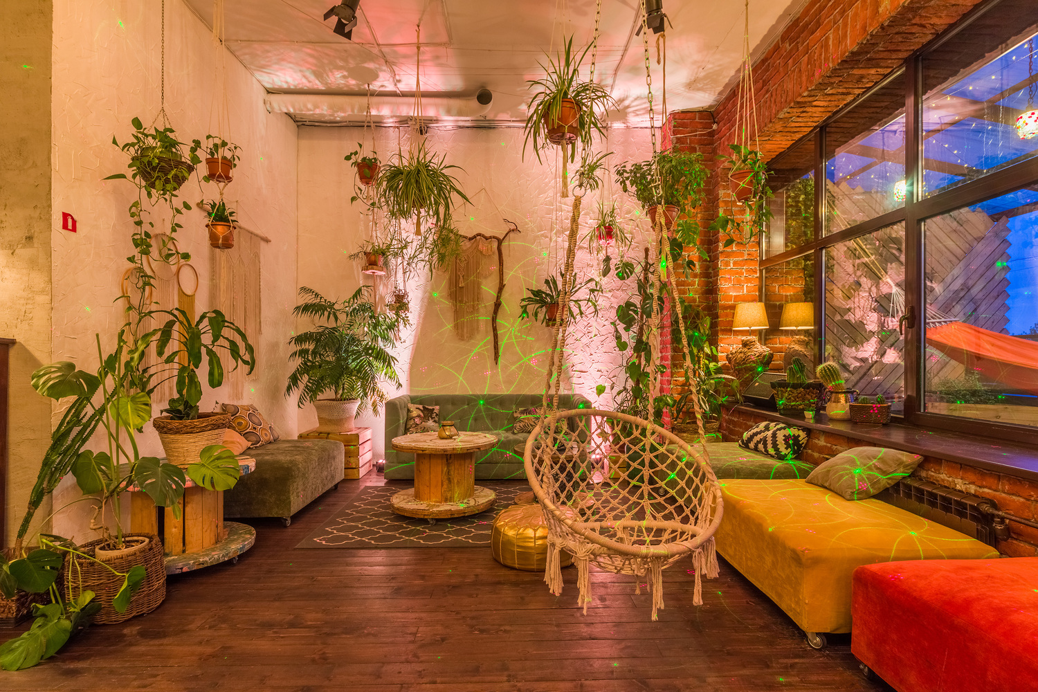- возможность разместить большое количество людей, более удобное общение не только с соседями по столу, как если собираться в кафе
