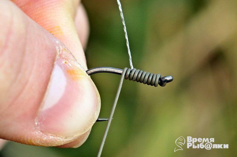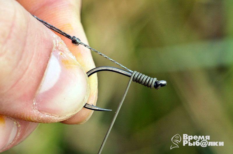 Оснастка в своей самой первоначальной форме, она заметно изменилась с тех пор. Оплетка не запутается при закидывании удочки, не будет теряться на более мягких грунтах, а также карпу будет сложнее ее вытолкнуть, это три очень важных фактора оснастки. N-trap с полужестким покрытием также позволяет мне создать изгиб поводка и крючка.Этот изгиб помогает оснастке проворачиваться и быстрее зацепляться во рту карпа, что приводит к более результативным подсечкам.