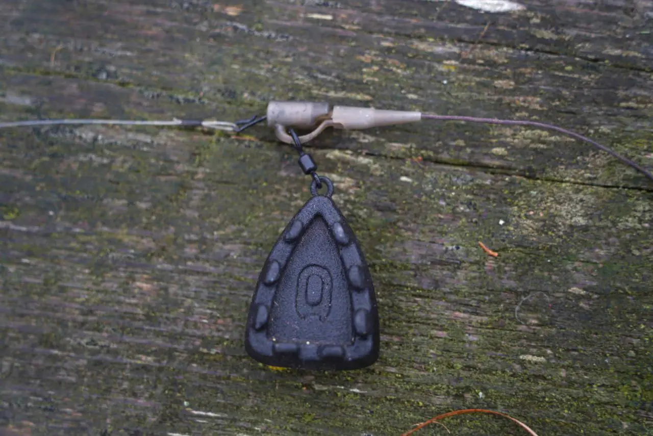 Для быстро отстегивающегося груза на монтаже «Inline» применяется специальный вертлюжок с двумя кольцами Carptoday Tackle Double Ring Swivels и резиновый конус для безопасной клипсы.