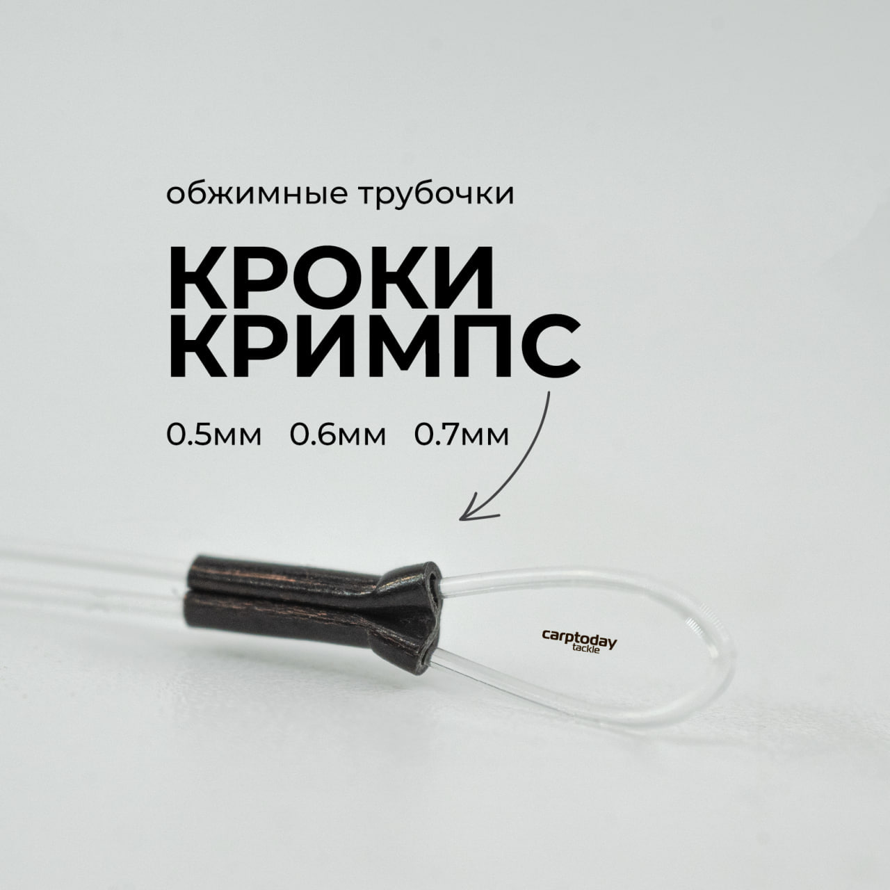 Один единственный узел – петля. Она формируется не с помощью всем привычной «восьмерки», а уже давно вяжется с помощью обжимных трубочек Carptoday Crokи Crimps диаметром 0.5мм. Соединение всегда получается надежным и прямым. Флюр невозможно «перетянуть» (пережечь) и помимо этого, делается очень быстро.