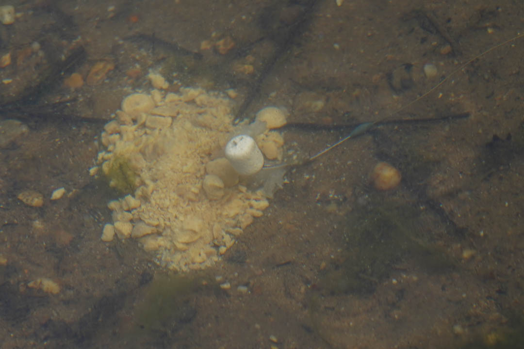 В период межсезонья откажитесь от обильного количества прикормки: вместо этого точечно подайте небольшую порцию спод-микса в количестве 2-3 спомбов.