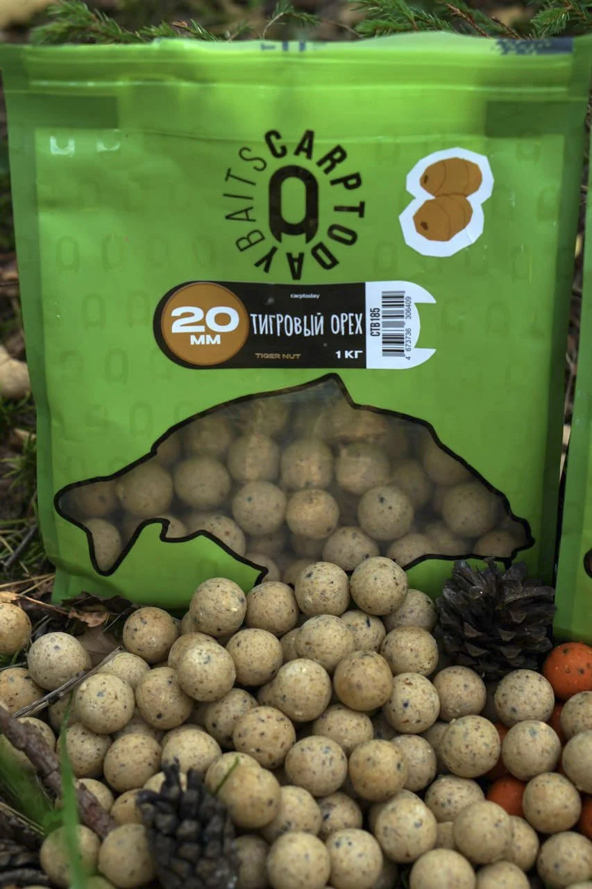 Это бойлы на базе птичьего корма с добавлением муки тигрового ореха. Они немного более питательны и обладают уникальный ароматическим профилем.