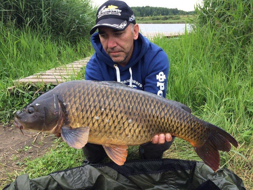 Анатолий Михайлов и его трофей, пойманные на водоеме «Саенки» в Белгородской области на бойл со вкусом сливы!