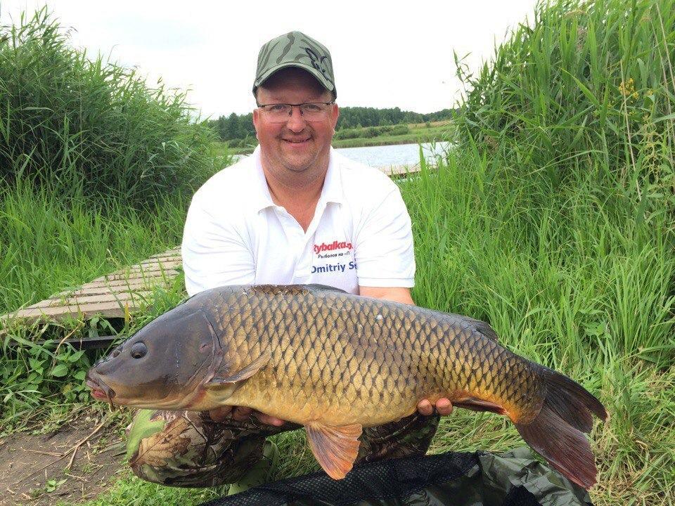 прислал две фотографии, обе были сняты на водоеме «Львовские пруды» (Волоколамский район). Перед Вами красавцы карп и амур каждый на шесть с половиной килограммов.