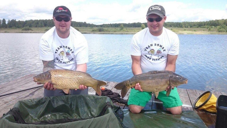 Продолжаем подборку фотокарпов с водоемов Подмосковья. Роман Серебренников недалеко от Наро-Фоминска поймал двух карпов на 5 и 6 кг. Водоем «Генезис».
