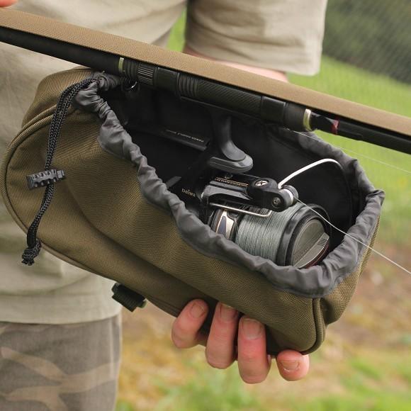 Они сделаны, как дополнение к колчану и решают задачу, связанную с защитой катушек. Сумки сделаны из того же материала, что и колчан с рукавом, но снаружи дополнительно обшиты гладким нейлоном. Сумка затягивается ремнем. Она довольно большая; в нее можно поместить любую катушку. Несколько сумок можно соединить вместе при помощи специальных замков. Благодаря такому соединению, сумки с катушками не расходятся в разные стороны во время транспортировки. Также в сумках катушки не сбиваются в кучу и ничего не запутывается. Цена такого придатка вовсе не высока — всего £6,95 за штуку.